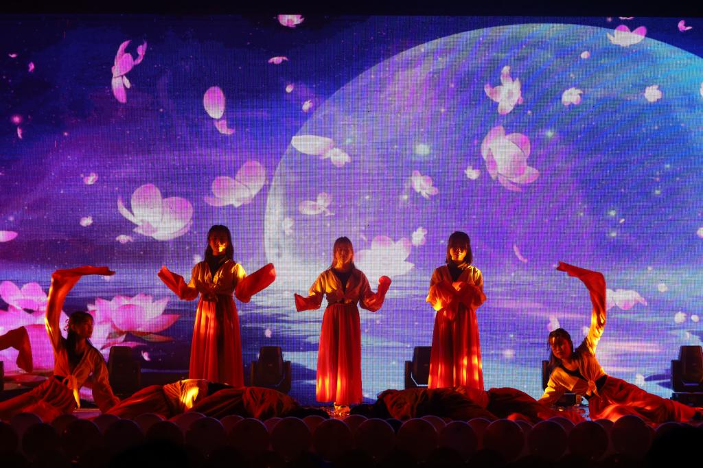 奋进的青年风华正茂,活力的化院朝气蓬勃。青春的气息,跳动的音符。一首《稻香》拉开了篇章的序幕,杯子舞伴随着同学们的合唱,节奏欢快,把我们代入了童年的回忆。而《小偷在哪》虽说是一场默剧,却牢牢吸引住了大家的目光,表演者的表演生动形象滑稽有趣,底下的观众也都看的津津有味乐此不疲。途过千千万万山水,灯火如明,星月山河,都做聘礼,拾尽春花,人间忽晚,歌伴舞《赤伶》婉转的歌声,悠扬动听。2020年的新冠疫情打破了我们原本平静的生活,小品《等你回家》以疫情为题材塑造了一个个生动的人物形象,为我们讲述了抗疫中的一场感人肺腑的故事。