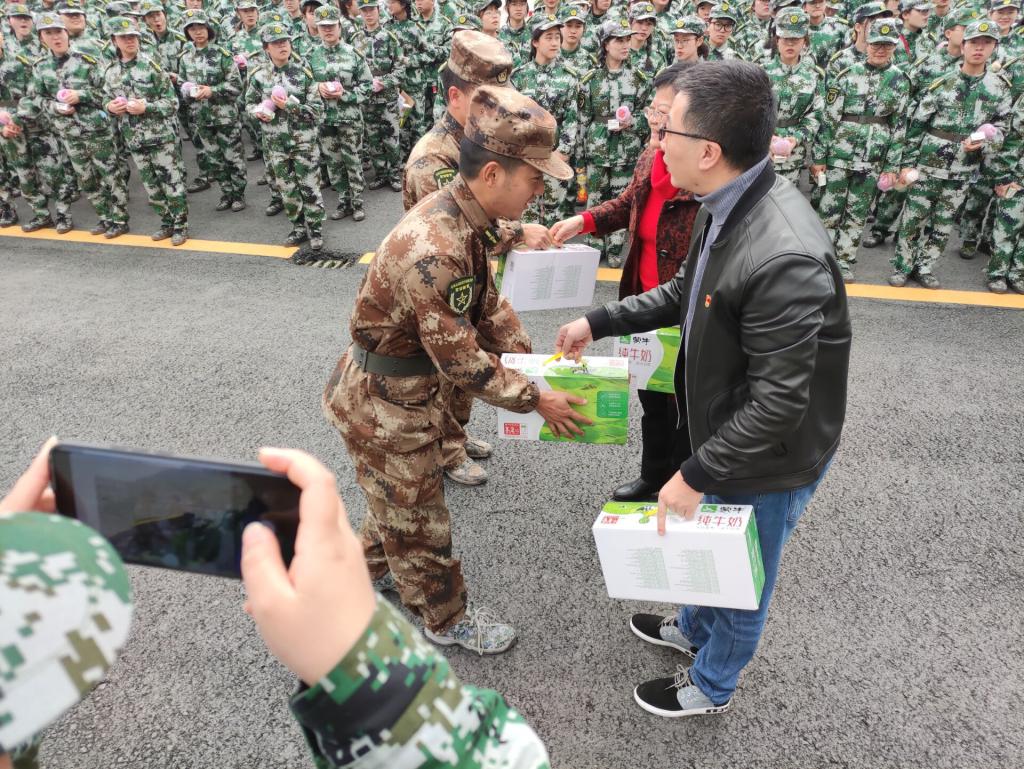 来到训练场,驻训老师学工办副主任崔宝玉与团部教师、教官热情迎接朱书记一行的到来。参训学生也集合列队,他们动作规范整齐,身姿挺拔。朱书记向同学们问好,代表学院表达了关心,赞扬了同学们的军训成果。并提出三点要求:一、坚持训练,学习国防知识,懂得自己肩负的责任;二、养成特别能吃苦精神、战斗精神、奉献精神;三、将军训养成的良好习惯带到未来的学习工作中。随后她代表学院向同学们发放了牛奶、苹果等慰问物资,鼓励同学们再接再厉,圆满完成军训任务。在同学们的陪同下,朱书记一行人参观了宿舍,检查内务成果。潘维副书记询问到作息时间是否习惯,军训感受如何。同学们表示很锻炼人,而且一定会坚持下去的。