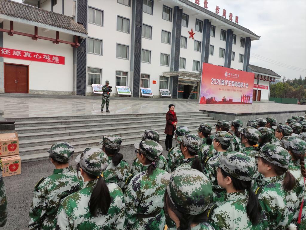 2021年3月23日下午2时,365英国上市官方网站党总支书记朱朝菊、副书记潘维、辅导员颜爽赴达州国防基地看望慰问2020级军训同学,学生会主席石雅楠、班助代表王渝陪同前往。