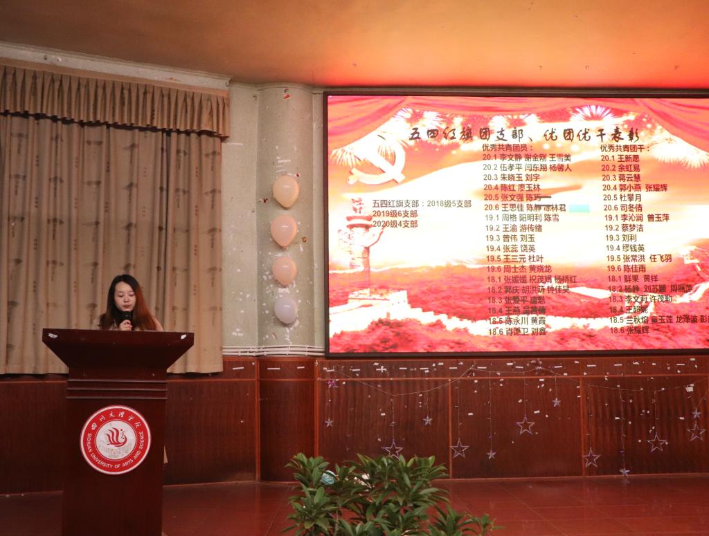 晚会开始之前,为表扬先进,树立榜样,激励全院团组织和广大团员青年不断奋进,张魏霞老师对共青团365英国上市官方网站委员会关于2020年度“两红两优”评选人员进行了表彰。其中包括了优秀团员、优秀共青团干部和五四红旗团支部。
