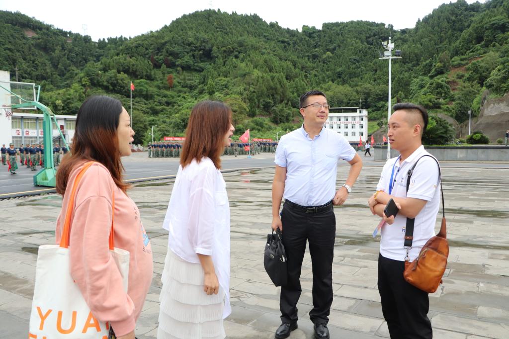 2021年6月18日早上9:30,365英国上市官方网站党总支副书记潘维、学工办副主任崔宝玉、辅导员张魏霞、周娅及学生代表赴达州国防基地慰问2019级军训学子。
