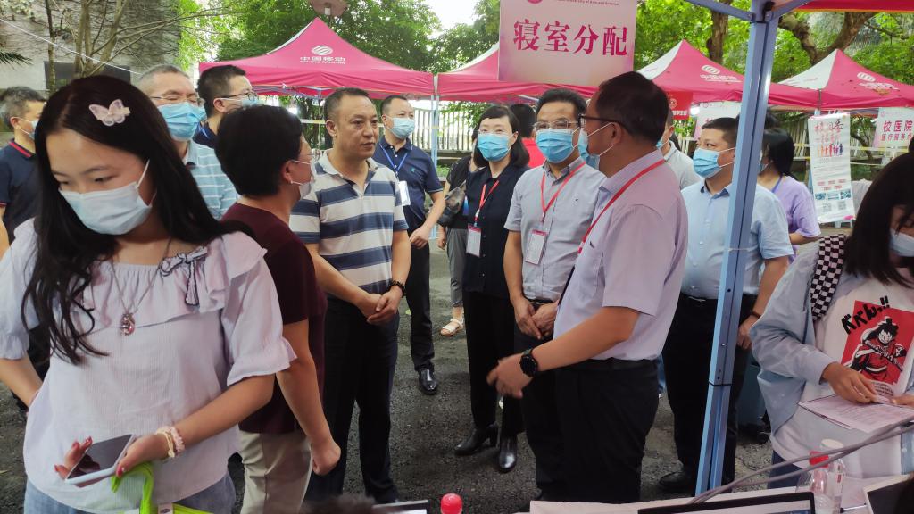 报道当天发放校园卡,新生手册,宿舍钥匙等物品及辅助新生完成个人信息核对等相关事宜。迎新工作进行得如火如荼,迎新现场也严格的按照流程进行。随着新同学陆续的到来。志愿者们首先帮助他们把行李寄存好,随后有条不紊的引领新生完成报到的所有程序,在志愿者的陪同下报道程序简单快速。院领导和老师对同学们关于政策、学习、生活等方面的疑问进行了详细解答,并予以鼓励,真正做到了:沟通零距离。对于省外报到新生,在进入校园第一时间就由志愿者带领前往校医院做二次核酸检测,坚决抓好防疫工作贯彻落实。当天下午刁永锋校长等校领导一行人莅临365英国上市官方网站视察指导迎新工作,并予以高度肯定。