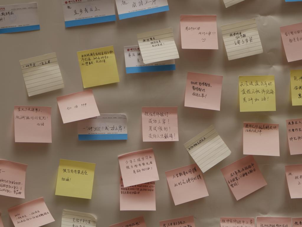 活动在南坝校区图书馆门口举行,活动包括设置横幅激励、师生献祝福、考研学子留言纪念、领取水果糖果增加获得感等多项内容。活动中,广大师生热情参与,纷纷在留言板上表达观点、想法,有对考研师兄师姐的殷切祝福、有对自己个人成长发展的美好期盼、还有考研人备考过程中的心路历程,更有老师留言表达对莘莘学子的厚爱与祝福。同学们在温馨的话语中感受到爱的力量,化解了成长中的压力与烦恼,感受到了人性的温暖。