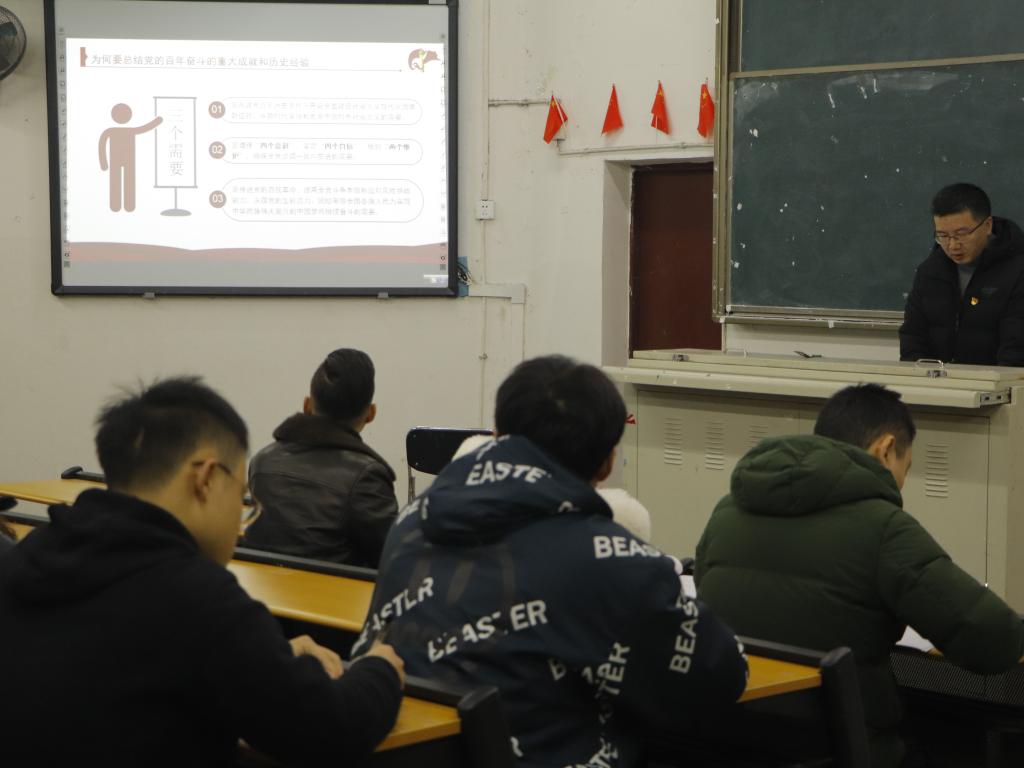 潘书记紧紧围绕党的十九届六中全会精神从对过往历史发展的回顾,党对未来发展的现实意义作出的明确目标,以习近平同志为核心的党中央深刻把握历史发展规律以及党和国家事业发展的历史过程和使命担当四个方面为同学们进行了详细讲解。