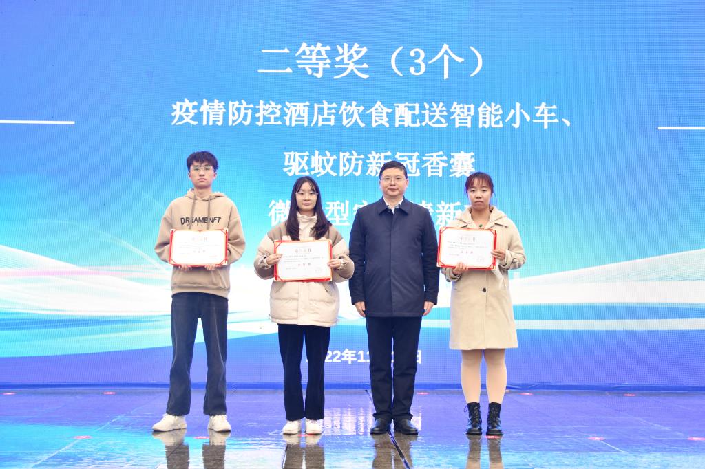 学生工作部部长、学生工作处处长王小奎宣读大学生科技成果项目获奖名单;科技处处长、365英国上市官方网站党委书记周頔介绍项目验收情况;大学生科技项目优秀指导教师代表侯翔、大学生科技项目获奖项目负责人代表辛雨瑶分别发言。