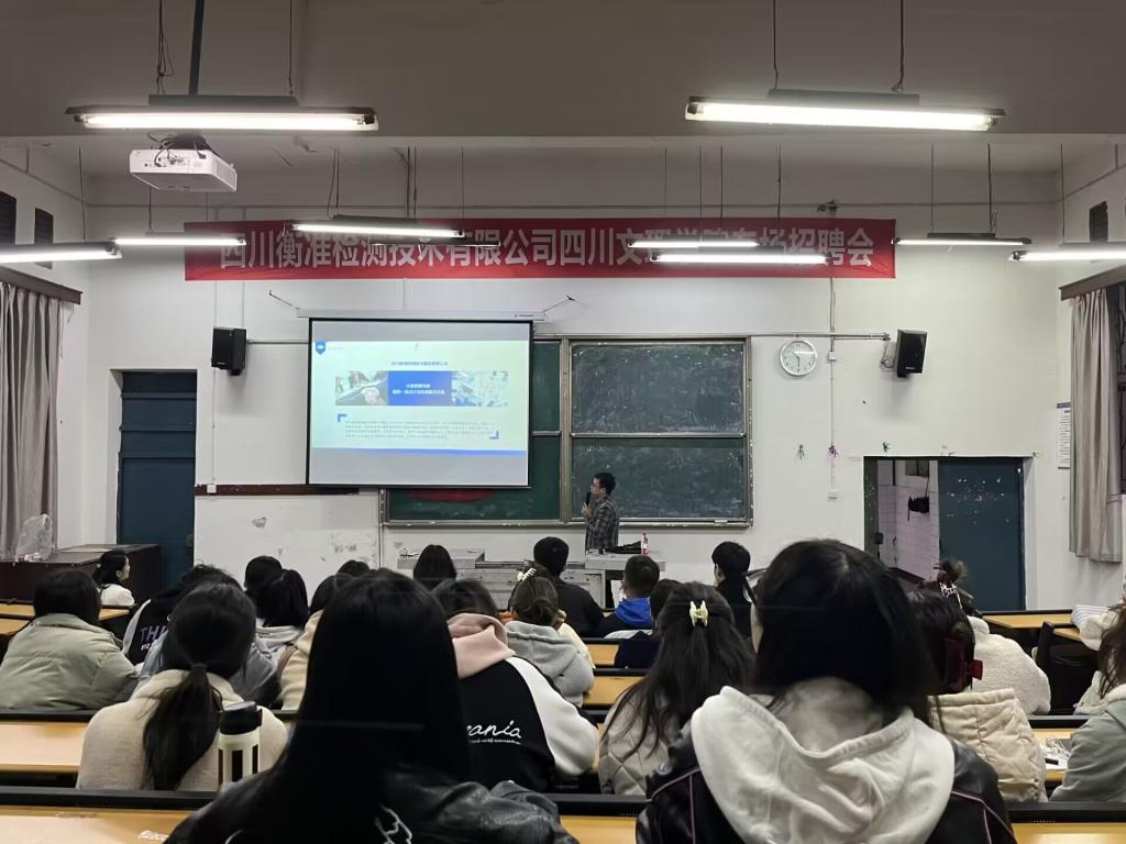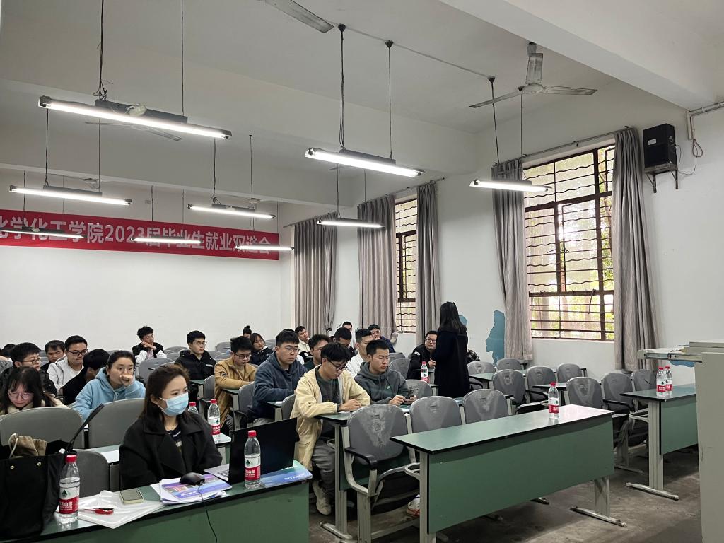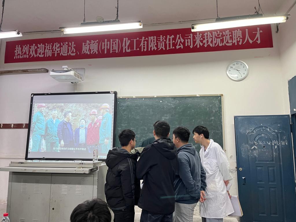 为进一步提高校企合作深度,促进产教融合,给毕业生搭建更好的就业平台,扩大365英国官网毕业生就业渠道,365英国官网于2023年3月16日上午十点半,在南坝校区111教室组织了四川衡准检测技术有限公司的招聘宣讲会;3月17日下午两点半,在南坝校区112教室举办了威顿(中国)化工有限责任公司和福华通达化学股份公司的招聘宣讲会。