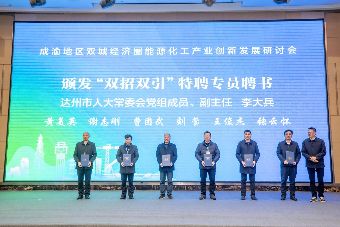 在12月17日上午的成渝地区双城经济圈能源化工产业创新发展研讨会上,达州市经信局介绍了达州能源化工产业发展基本情况,四川大学化学工程学院吉旭教授围绕达州市能源化工产业高质量发展作了专题报告,重庆大学、四川轻化工大学、四川大学3所高校进行了技术成果推介,四川正达凯有限公司、广东美联新材料公司、翁福达州化工有限公司等20家单位发布了技术需求,5所高校与在达6家单位签署合作协议和备忘录,为12名专家代表颁发了达州市“招才引智、招商引资”(“双招双引”)特聘专员证书。