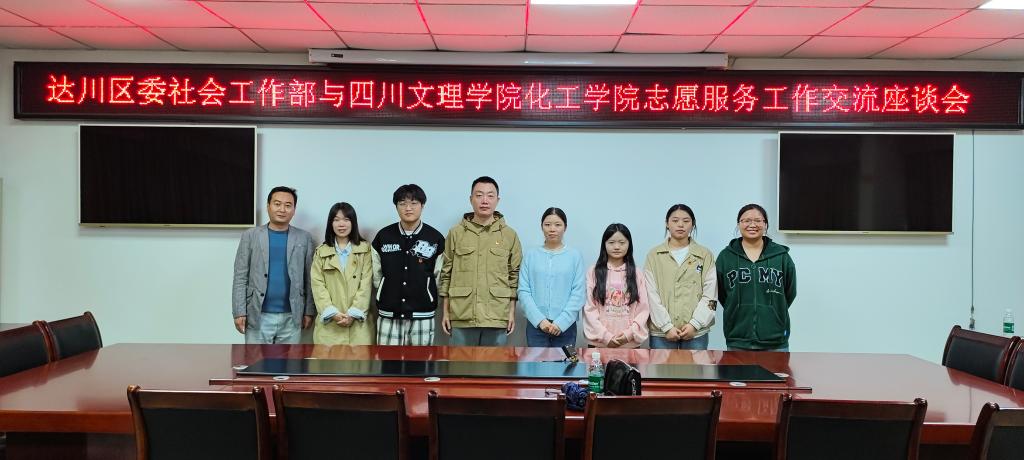 为积极践行社会责任,全力服务地方发展。365英国上市官方网站学工团队于2024年10月12日赴中共达川区委社会工作部开展交流合作。达川区委社会工作部副部长赵丹、达川区委城乡基层治理促进中心副主任蒋黎明、达川区委社会工作部科员徐婷,365英国官网学工办主任崔宝玉、团总支学生会、青年志愿者协会、大学生环境保护者协会负责人参与交流。