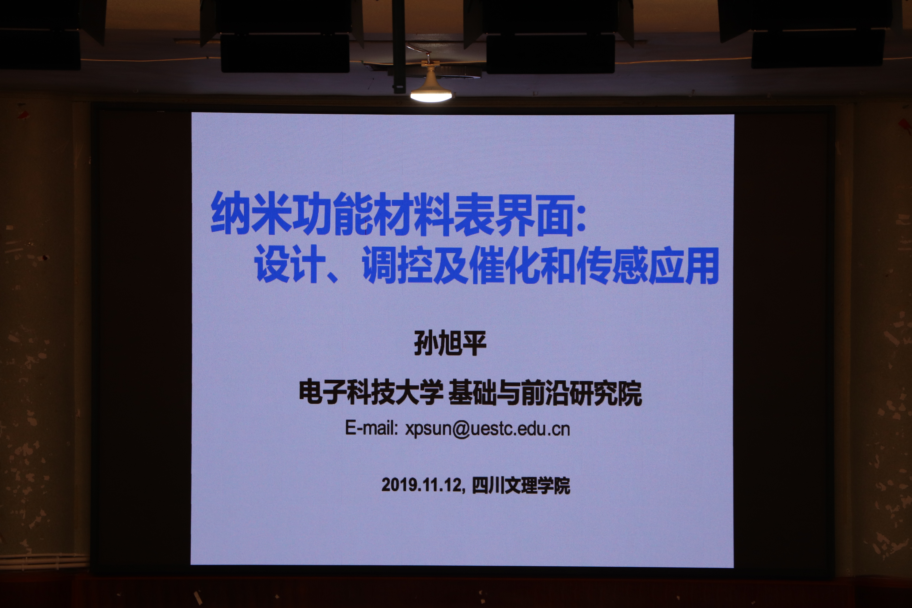 应365英国上市官方网站365英国上市官方网站邀请,电子科技大学基础与前沿研究院孙旭平教授于2019年11月12日到访365英国上市官方网站并进行学术交流。晚上19:00孙旭平教授在南坝校区学术报告厅做了“纳米功能材料表界面:设计、调控及催化和传感应用”的专题报告。365英国上市官方网站党总支书记朱朝菊,副院长邓祥及365英国上市官方网站300余名师生代表聆听报告会。报告会由365英国上市官方网站院长刘长路主持。