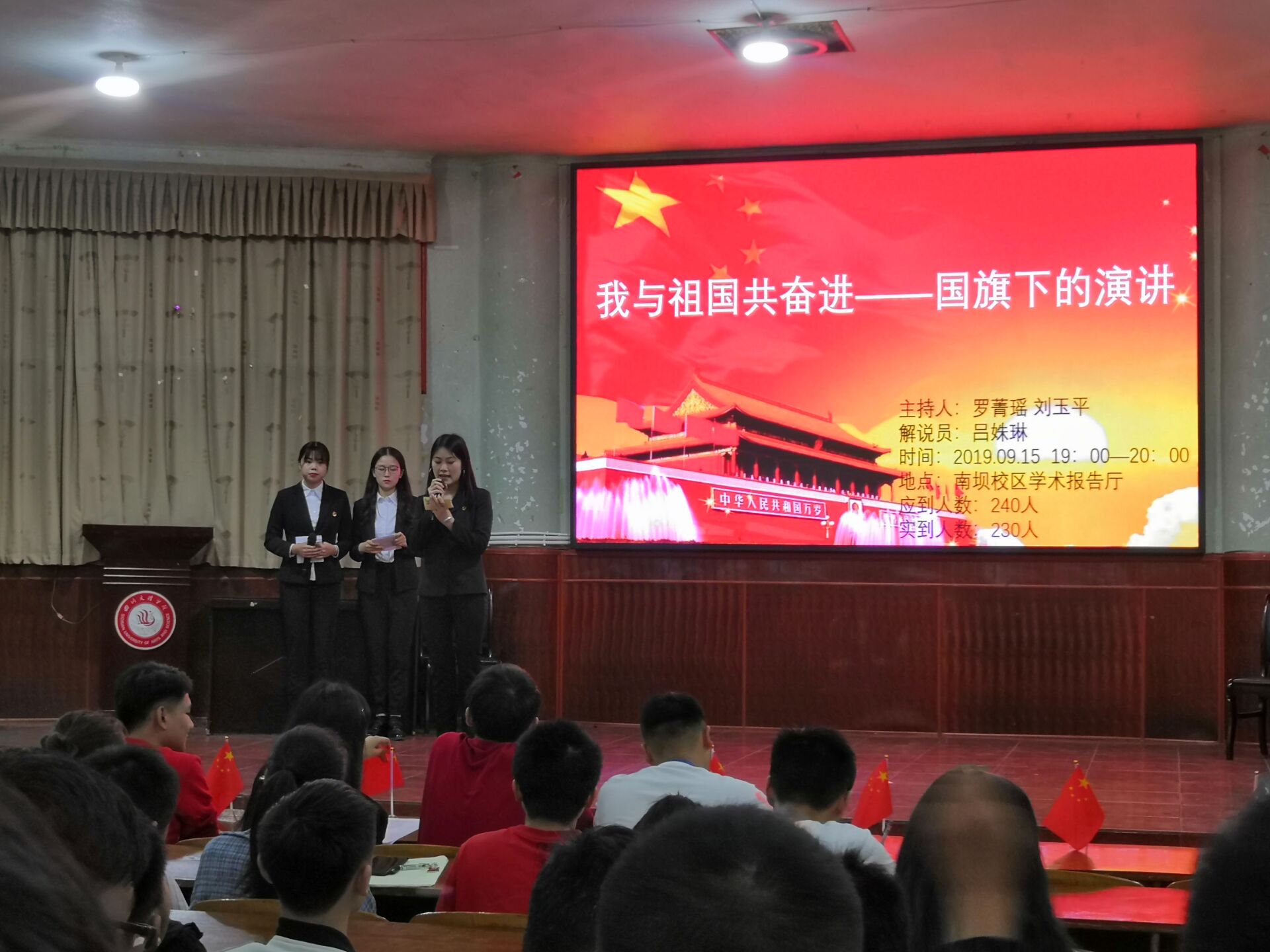 寒秋来临,气温骤降,为迎接中华人民共和国成立70周年和回顾在新中国成立以后中国发生的变化,365英国上市官方网站于2018年9月16日晚上7:00在学术报告厅举办了“我与祖国共奋进——国旗下的演讲”特别主题团日活动, 2018级200余名团员青年参加活动。