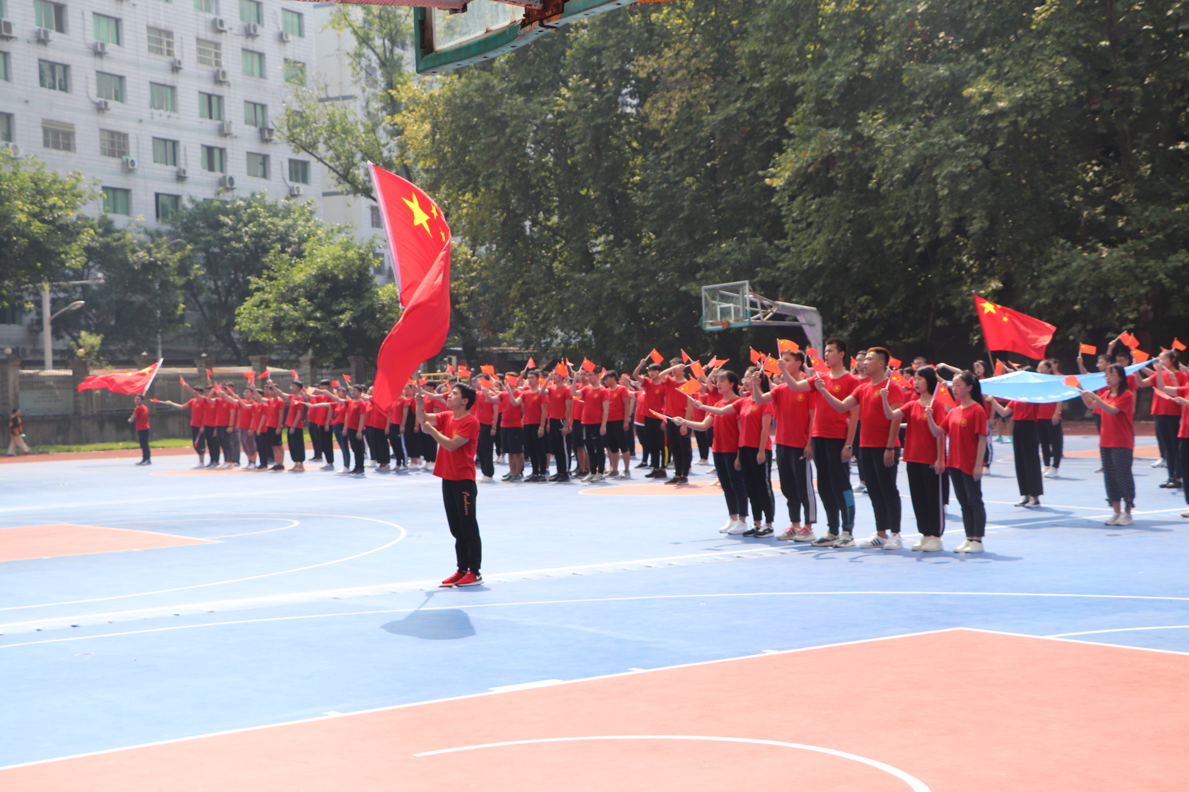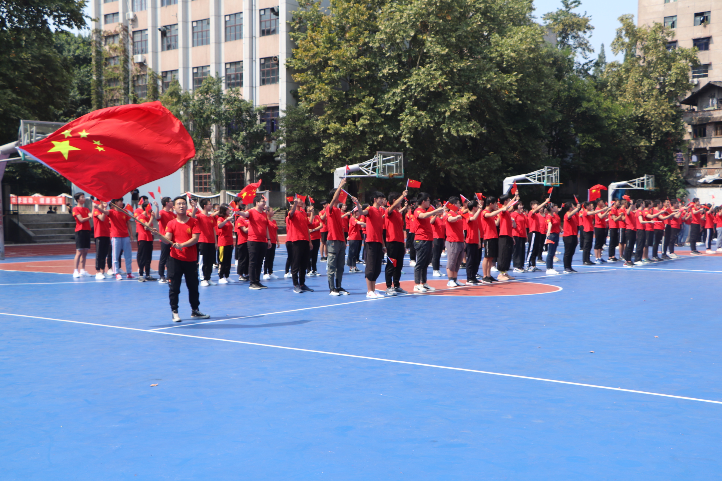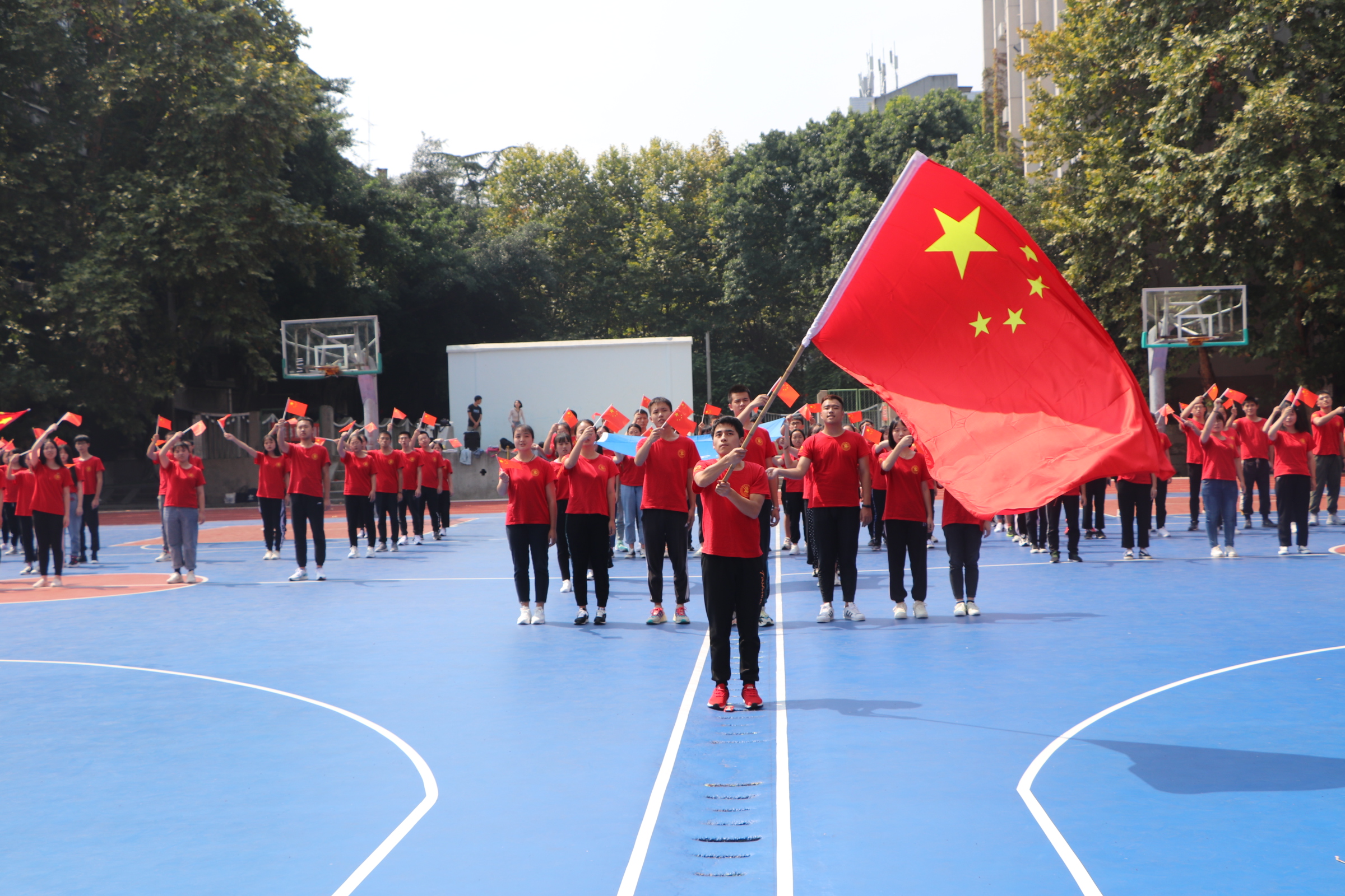 活动开始时,首先映入眼帘的是朝气蓬勃的新生们,他们身着中国红的化工学院院服,面带青春洋溢的微笑,激情地挥舞着鲜亮的五星红旗。随着整齐划一的队形,一个由众学子组合而成的1949-2019呈现在我们眼前,这是祖国这七十年来,跟着党一步一步一个脚印走过的历史痕迹,这是祖国这七十年来,岁月不居,时节如流,以坚如磐石的信心,只争朝夕的劲头与坚韧不拔的毅力,一步一个脚印把前无古人的事业推向前进,推向明天,更是我们对祖国跨过七十,走向精彩明天的美好期待!同学们激动、期待、向往的面容表达着化工学子对祖国的热爱与自豪。在充满爱国情怀的伴奏声,同学们唱响了爱国歌曲,声音嘹亮,跟着歌声,他们激动地挥动着手中的红旗,新青年的爱国热情随着激昂的歌声挥洒在校园的每一个角落,激荡着每一位听者的心灵。