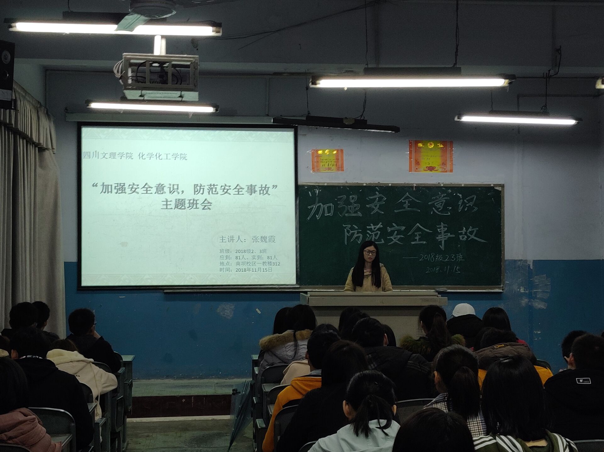 11月15日,各班召开了安全教育主题班会,在各班班会上,辅导员老师以有关校内校外人身财产的重大安全事故为实例,为大家讲解了消防安全、交通安全、日常生活安全、校园活动安全以及在自然灾害中的自我保护和意外事故的处理方法等安全知识。