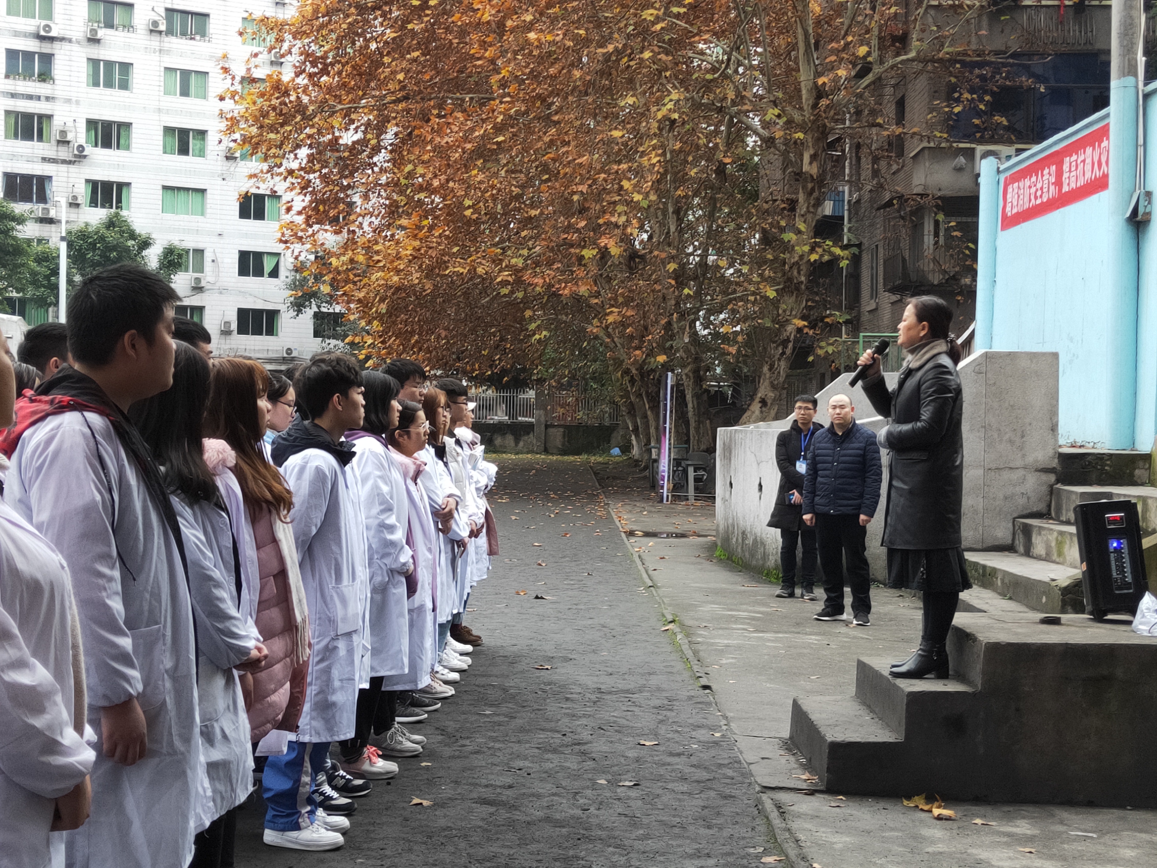 首先,学院对本次演练做了充分的准备,明确规划了合理的疏散路线,安排了学生干部在各路口引导同学们进行疏散。16时30分,随着警报声的拉响,工作人员吹响口哨,发出疏散指令后,同学们在工作人员的组织下,按照预定的疏散路线快速有序地撤离到指定的安全地带,并迅速集合清点人数。整个撤离过程用时约4分钟。