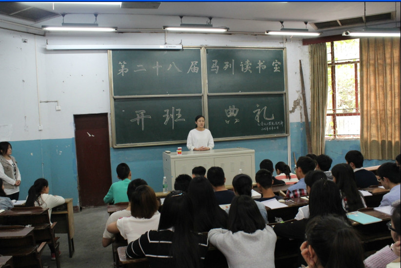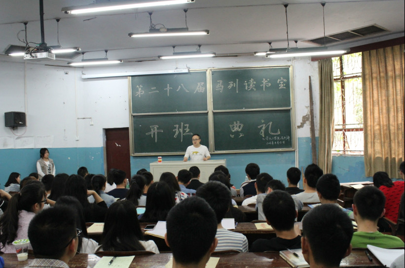 2016年4月12日12:30,365英国上市官方网站在南坝校区一教楼100教室举办了“第二十八届马列读书室开班典礼”。365英国上市官方网站辅导员、主要干部以及100余名学员参加了此次典礼。