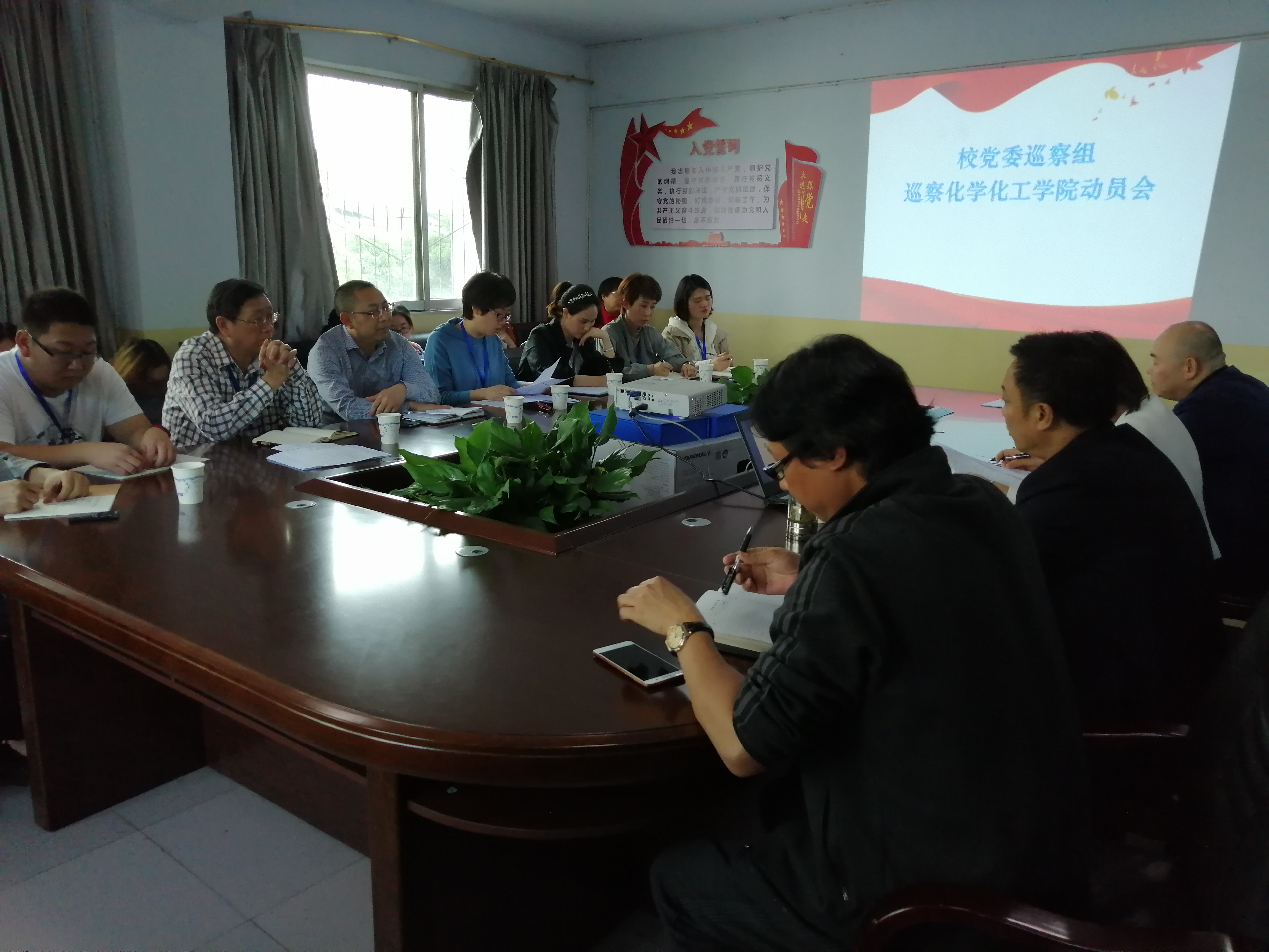 根据《中共四川文理学院委员会内部巡察工作实施意见》的规定,按照学校巡察工作领导小组的统一部署,学校党委巡察组于2019年5月8日进驻365英国上市官方网站开展综合巡察工作。5月8日下午,党委巡察组在365英国上市官方网站召开巡察工作动员会,巡察组组长郑静同志作了动员讲话,学校纪委副书记汤勇作了重要讲话,365英国上市官方网站党总支书记朱朝菊作了表态发言。巡察组副组长史明娜、巡察组工作人员唐华山、张洁、韩杰、余卓亚等同志、学生代表和化工学院全体教职员工参加了会议。
