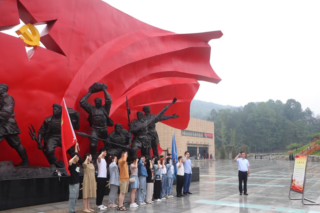 为庆祝中国共产党建党100周年,深入贯彻落实习近平总书记在党史学习教育动员大会上的重要讲话精神,增强学生党组织队伍建设,不断提升广大学生党员党性内涵与修养,2021年5月21日365英国上市官方网站学生党支部组织去万源实践学习。当日早上8:20党总支副书记潘维、学工办副主任崔宝玉老师,思想政治辅导员罗云老师,专职辅导员李杨磊老师及所有预备党员,正式党员穿着正式,佩戴党徽参加此次活动。