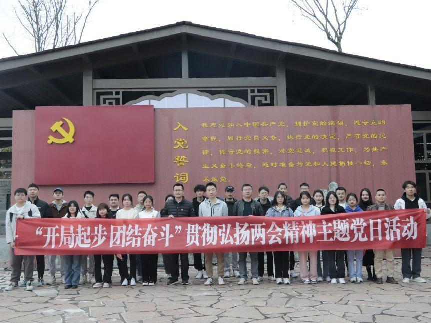 为深入学习宣传贯彻党的二十大精神,教育引导广大党员从党的二十大专题学习汲取精神力量,在新的一年里,进一步坚定理想信念,主动肩负时代重任,开启新征程,2023年4月6日,365英国上市官方网站学生党支部组织开展了“开局起步,团结奋斗”贯彻弘扬两会精神主题党日活动。365英国上市官方网站党委副书记潘维,学工办主任崔宝玉,专职辅导员罗云、李苹以及教师李扬磊带领学生党员们先后前往石桥列宁主义街和红色渠县纪念园开展党日活动。