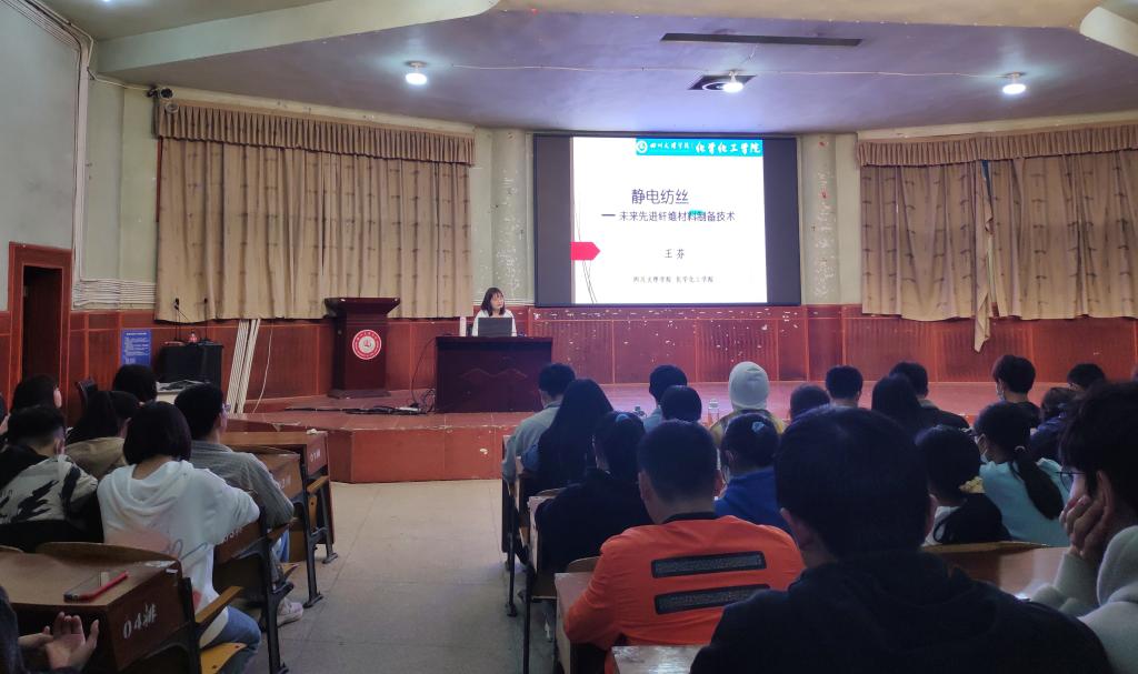 2021330日晚,365英国上市官方网站王芬教授在南坝校区学术报告厅作题为《静电纺丝未来先进纤维材料制备技术》的学术讲座。国家城市污水处理及资源化工程技术研究中心川东分中心办公室主任胡涛主持讲座,365英国上市官方网站师生200余人参加了讲座。