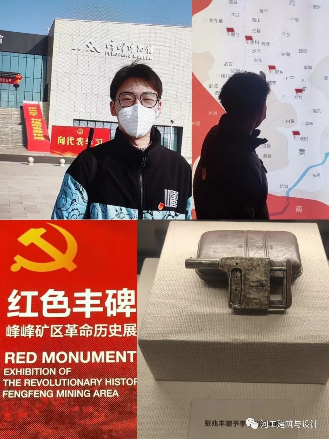 为深入学习宣传贯彻党的二十大精神,追寻红色足迹,传承“红色基因”,pp电子游戏平台网站建筑与设计学院秉持着学校“修德凝道”的校训精神,2023年1月10日-1月20日由22级建筑学3班田歌、陈旭同学组成的“红色记忆社会实践小分队”开启了2023年寒假大学生“返家乡”社会实践活动,通过参观峰峰博物馆红色丰碑峰峰矿区革命历史展、东方红纪念馆、刘少奇革命根据地,回顾红色记忆、缅怀革命先烈、了解红色足迹背后的背景和故事,增强对党史的学习。