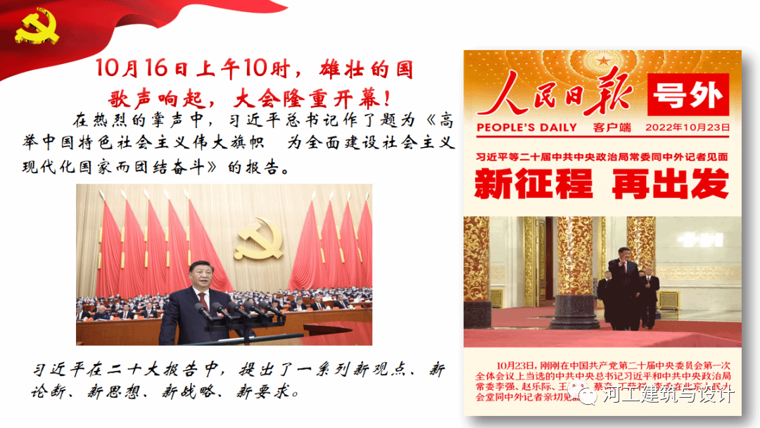 3月30日,建筑与设计学院社团联合会秉持着“永远跟党走,不忘初心,牢记使命”的信念精神在主教507举办学习二十大报告中的新观点、新论断、新思想的活动,和同学们一同学习并领悟二十大精神。