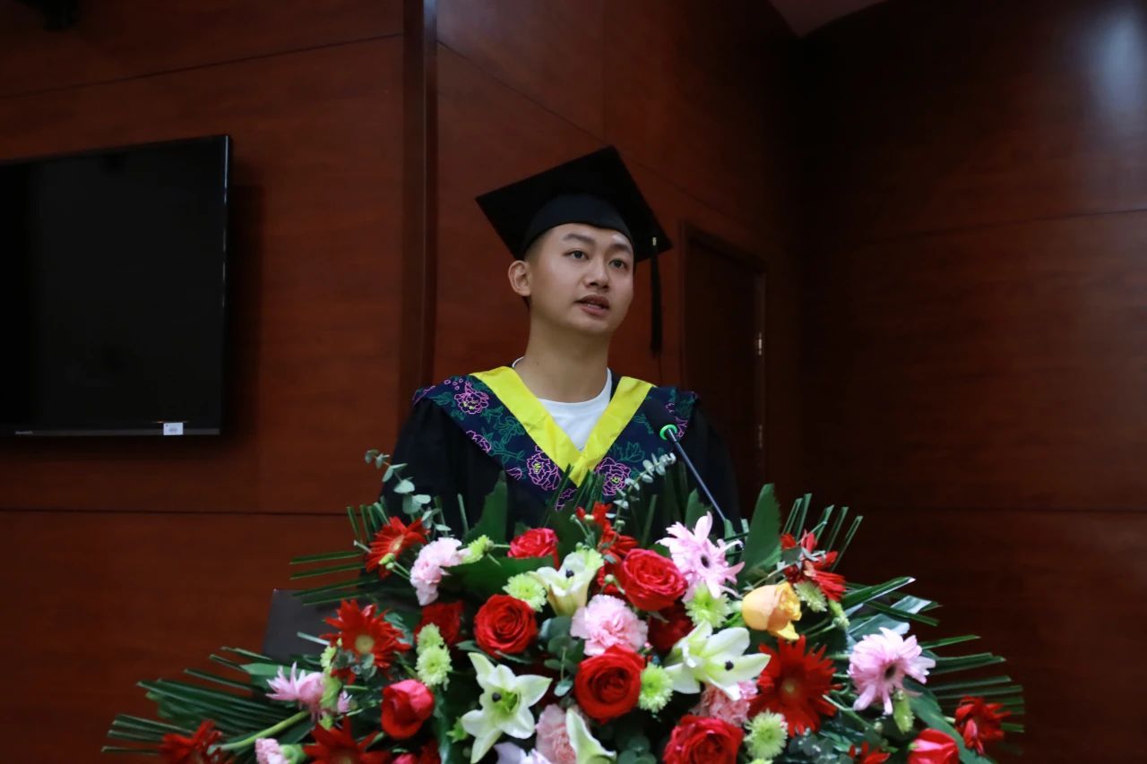 优秀毕业生发言,细数在校期间收获的经验和累累硕果,表达了亲身见证学校不断发展的自豪之情。他代表2023届毕业生向大学时期所有关心、帮助和包容过大家的老师们道一声感谢,虽有万千不舍,但未来仍会怀揣着在母校的所学所获继续勇往直前。