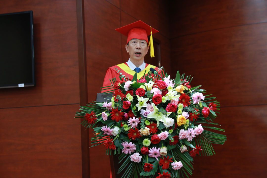 在庄严的国歌声中,毕业典礼正式拉开了帷幕。首先由董事长许顺亭致辞,他向2023届毕业生表达了最热烈的祝贺和最美好的祝福,充分肯定了同学们在学校发展过程中取得的成绩,四年来,学校见证了同学们的蜕变,同学们更是见证了学校高质量发展的每个瞬间,在迈向人生下一阶段前,他对同学们提出了三点希望,不断砥砺至善情怀,于长处多考量、在宽处多修炼;要把个人奋斗融入中华民族伟大复兴的时代洪流;坚定理想信念,在学习贯彻习近平新时代中国特色社会主义思想中把牢青春航向,要勇担时代重任,在国家发展实践中展现青春作为。