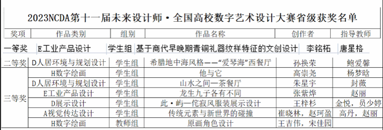 8月8日未来设计师·全国高校数字艺术设计大赛(NCDA)省级奖项结果揭晓,pp电子官网建筑与设计学院积极组织师生参赛,动员各系教师及学生投入赛事工作。其中pp电子官网建筑与设计学院荣获8个奖项,一等奖1项、二等奖1项、三等奖6项,其中2项进入国赛,此次获奖作品涵盖赛道范围较广,提升学生设计创新与实践能力,鼓励学生将专业知识服务于社会,拓展视野及团队协作精神,成为未来的主力设计师。