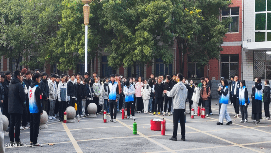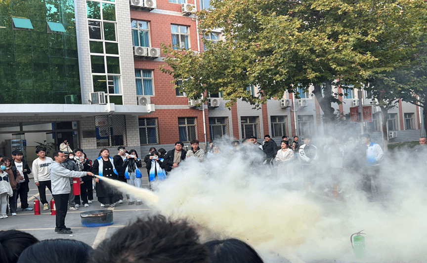 下午16点50分,在讲解完消防知识后组织同学们进行了灭火演练,提高学生自防自救能力。