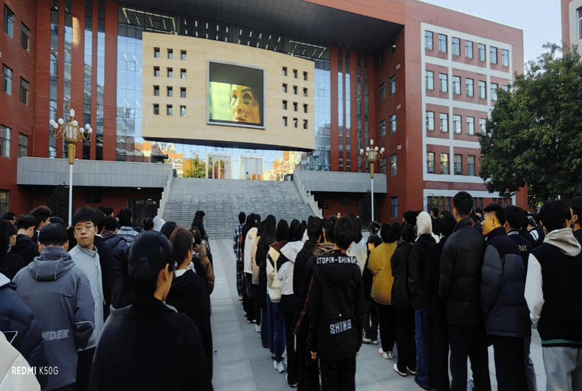 11月9日下午3点40分,各场地,各楼道定点安全负责人就位。烟雾弹投放员在指定地点,投放烟雾,制造火灾场景,警报拉响,演练正式开始。学生用手帕或衣袖等捂住口鼻,降低身体重心,快速而有序地按指定逃生路线,“逃生”到指定安全集中区域。