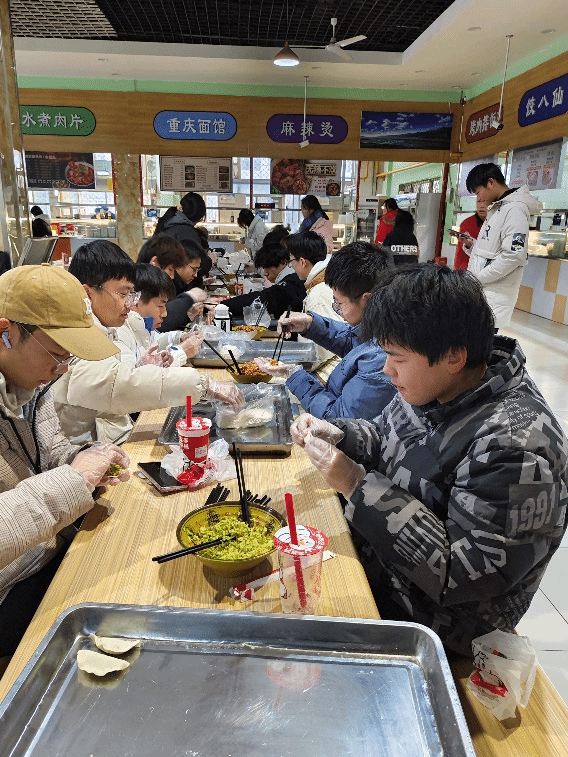 12月19日下午23级建筑学3班全体同学于食堂集合,展开包饺子活动,同学们在本班班长的带领下来到学校餐厅,将食堂事先准备好的饺子馅和饺子皮端上桌子。对很多同学来说,这是第一次包饺子,包饺子的技术还不是很熟练,但大家却有说有笑,相互切磋包饺子的技巧,比较着饺子的形状,同学们热情高涨,乐意无穷。
