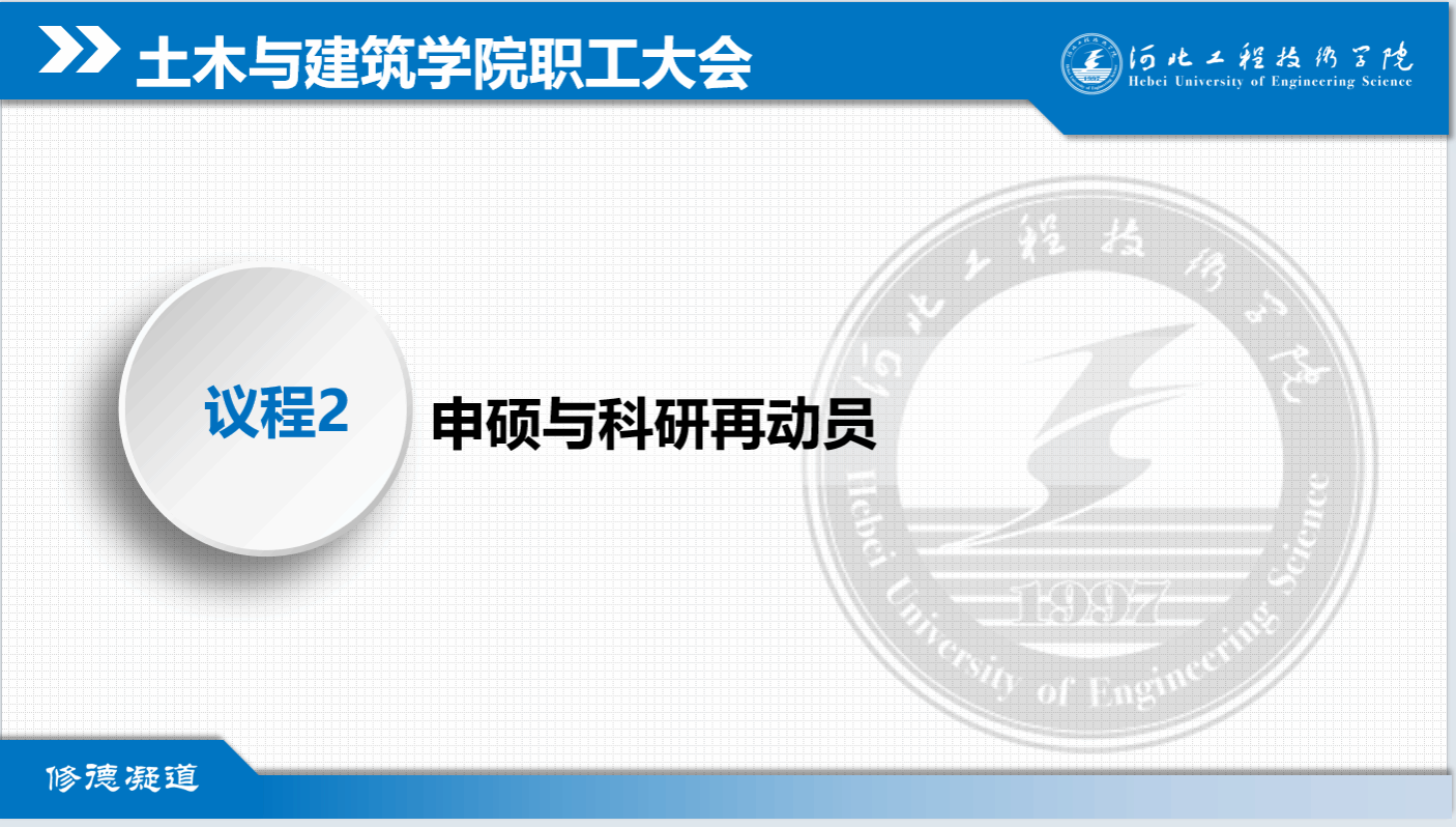 通过此次动员会,老师们对申硕有了更加深入的认识,对科研工作有了更加全面的了解,相信在王院长的激励、鼓励下,学院教职工将信心满满、干劲十足,不断提升自我,助力学校申硕与科研工作迈上新的台阶。
