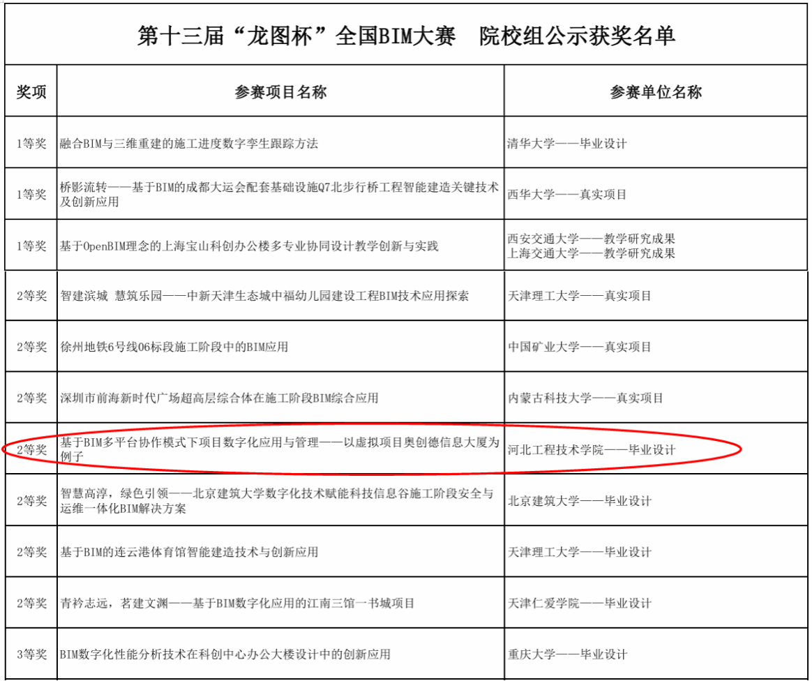 近日,第十三届“龙图杯”全国BIM大赛落下帷幕,由pp电子游戏平台网站赵利军老师指导参赛的两支队伍发挥出色,荣获全国二等奖和优秀奖。