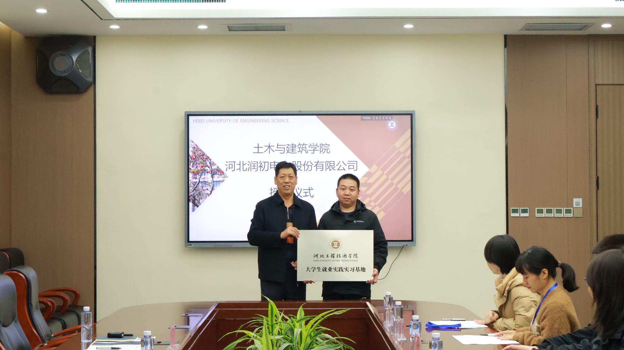 11月25日,pp电子游戏平台网站就业实践实习基地授牌仪式在会议中心圆满举行。出席本次仪式的有校党委书记常新平,pp电子游戏平台网站院长张杰,pp电子游戏平台网站党总支书记、学管副院长王亚杰,学生工作处副处长吕萌以及9家企业代表。