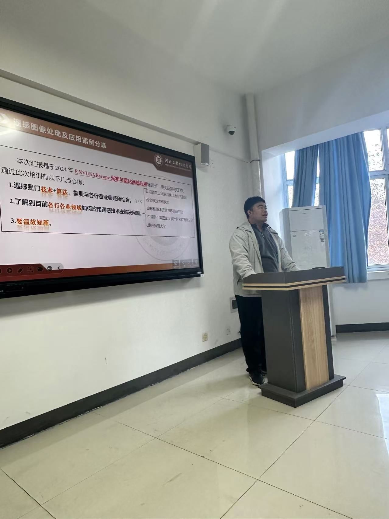 此次外训内化活动涵盖了工程管理、土木工程、测绘工程等多个专业领域。参加外训的教师们带回了前沿的行业理念、先进的教学方法以及最新的科研动态。在分享会上,栾振荣老师详细介绍了遥感图像处理及应用案例,通过现场演示与案例分析,让学院教师们直观感受到其在了测绘领域方面的优势。在土木工程教学方面,王雪教师分享了关于第五届全国土木工程专业青年教师教学研讨会-实践教学与实验实训,认识到自己学校的不足,建议跨学校、跨专业联合毕业设计,提出自己学校的特色,全校选修课:未来建筑、零碳主题公园、太阳系星球度假屋、蔚蓝家园等,强调通过实训教学与理论教学相结合的方式,加深学生对复杂土木工程的理解。这一方法将在学院相关课程中逐步推广应用,有望显著提高学生的学习效果。杨梦雪老师老师汇报的是,实践教学与实验实训,知识深化、科研创新、跨学科融合、工程实际,汇报的可以是重点厚基础强理论重实践。杨老师对于钢结构设计毕业设计提出新思路。曾一新老师就深耕价格调研,构筑成本体系展开讨论,提出调研方式有四种,建筑材料市场询价,工厂、项目实地走访,竟企对标交流,造价咨询单位资源整合。客户敏感点调研篇、盘成果、强输出,精总结、严完善五步法闭环管理,成果应用。张隆老师介绍了AI赋能建筑,探索多学科交叉融合新机遇。行业整体下滑,寻找新思路:月壶尊就地取材,建养并重,未来造好房子,第四代建造,智能建造,工业化、数字化、绿色化建筑业高质量发展,2012年行业大模型开始发展,AIGC,L2级场景大模型。