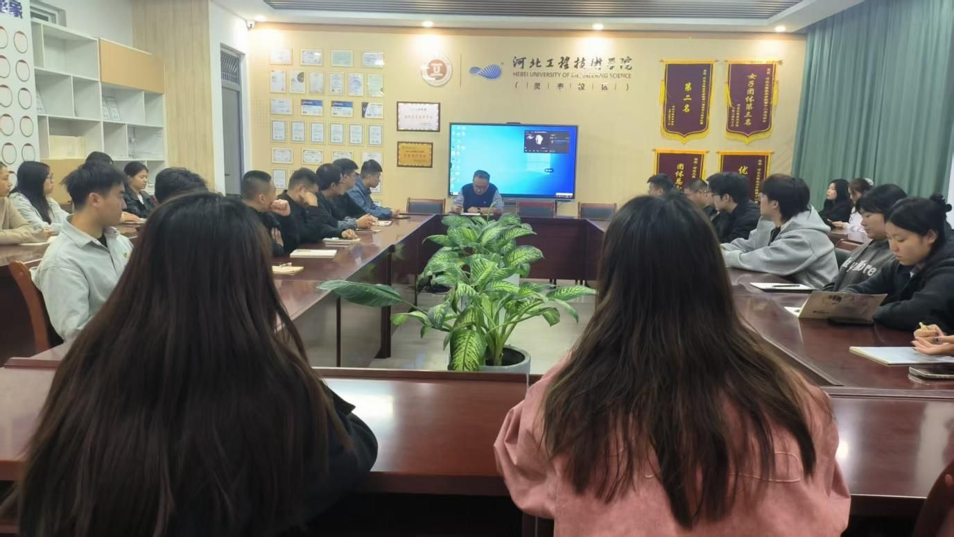 10月14日,pp电子游戏平台网站(灵寿校区)党组织理论学习会议在五号楼一层会议室召开。全体学生党员及入党积极分子参加学习。贺建民老师主持学习会议。