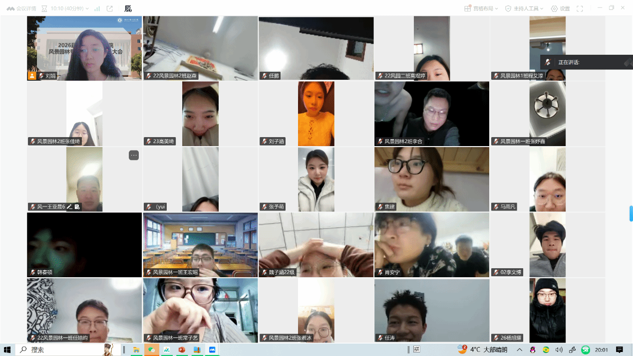 为进一步落实学校关于毕业实习工作的部署安排,确保2026届毕业生实习工作顺利开展,1月8日晚8时,风景园林系组织召开2026届毕业实习动员大会。会议由系主任刘娟主持,全体2026届毕业生及实习指导老师共同参加。