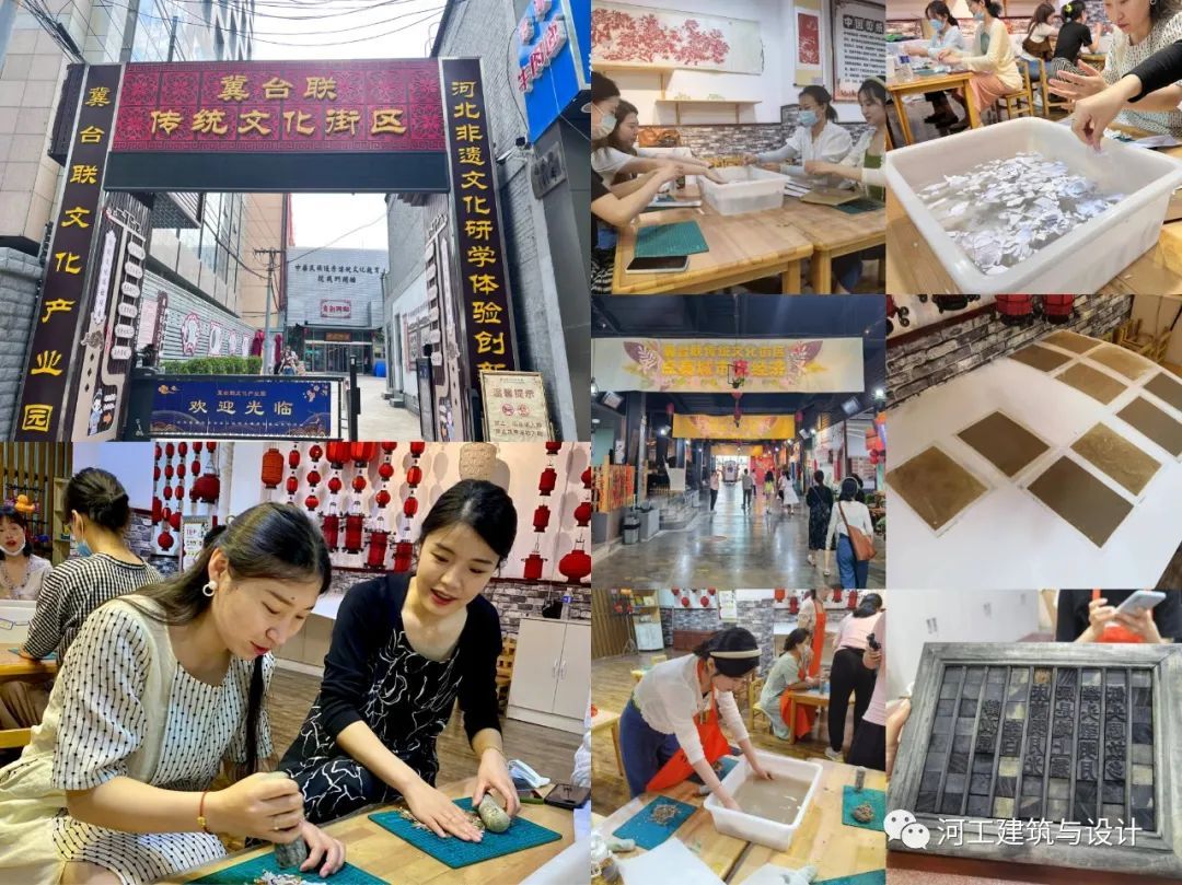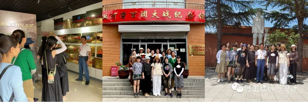 为丰富暑期培训内容,培训方式除了在室内及线上进行之外,还组织了外出实地考察活动。视觉传达设计系教师于6月21日前往石家庄井陉县洪河漕村的“百团大战井陉县展览馆”学习红色文化,在馆长带领下,开展了关于红色主题的教育活动。通过参观学习,大家接受了一次生动的党史教育,向老一辈无产阶级革命家学习,坚定理想信念,踏实做好教师的本职工作。通过对“藁城三宝”:宫灯、宫面、宫酒的传统民间工艺及冀台联传统非遗体验项目—活字印刷和古法造纸的亲身体验,对非遗有了更加深入对了解,对后期课程作业布置与非遗文化结合产生了灵感,为专业建设的特色方向发展奠定了基础。