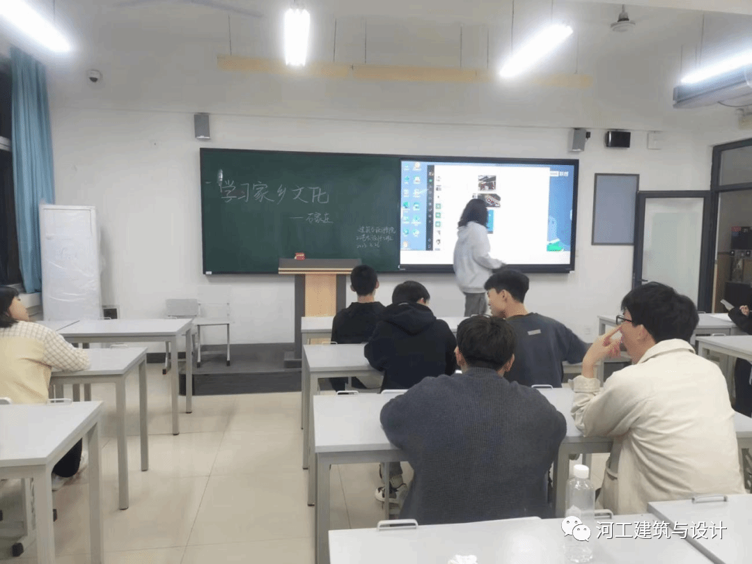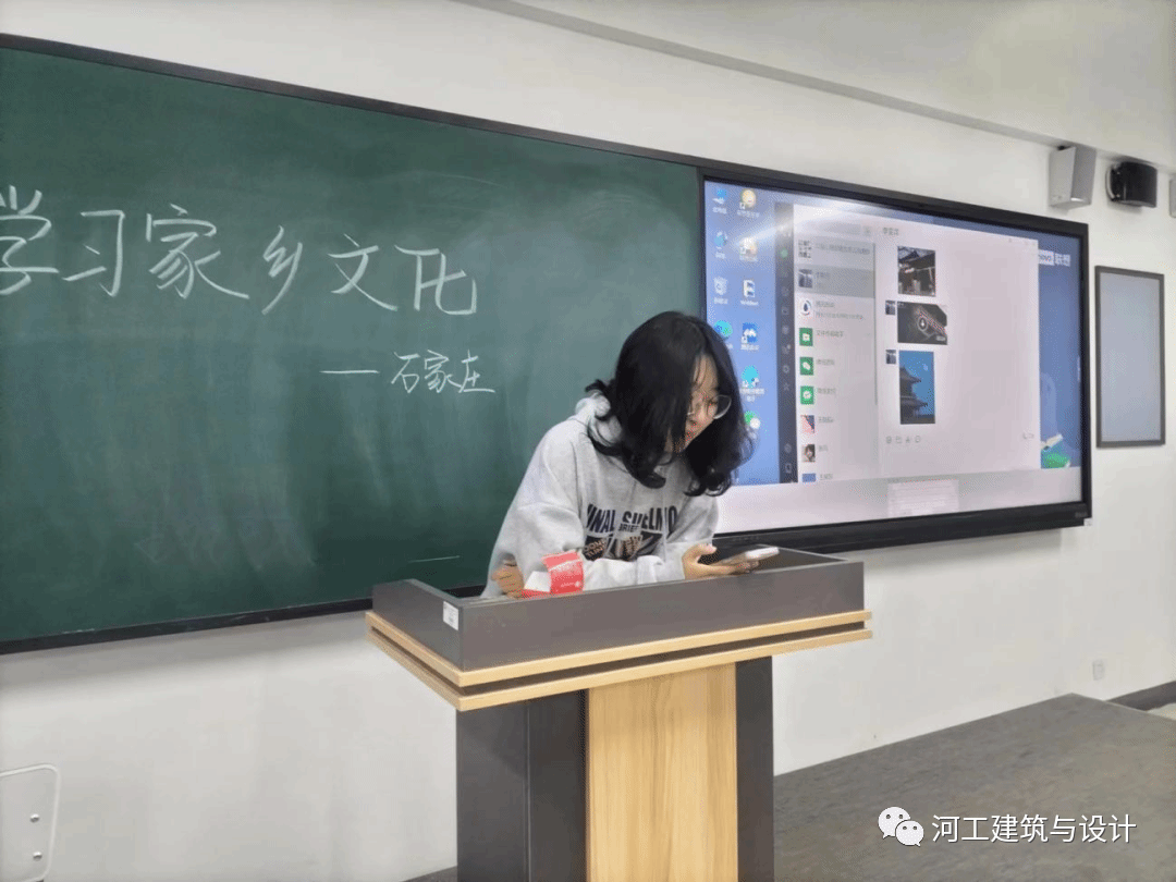 古郡新姿,乡愁国梦,称心如愿,天下正定。为了促进班级同学的团结,了解来自各地独有的家乡文化,pp电子官网建筑与艺术学院2022级艺术设计5班同学于2023年3月26日星期日在主教606举办“百班百品”主题活动,由班长和副班长组织做好准备工作,要求同学们准时到达教室,班会于晚上7:00正式开始。同学们在教室做好准备,本次活动由李雯洋同学进行分享她的家乡——石家庄正定,由宣传委员进行拍照。活动开始,李雯洋同学进行对正定的简单介绍。