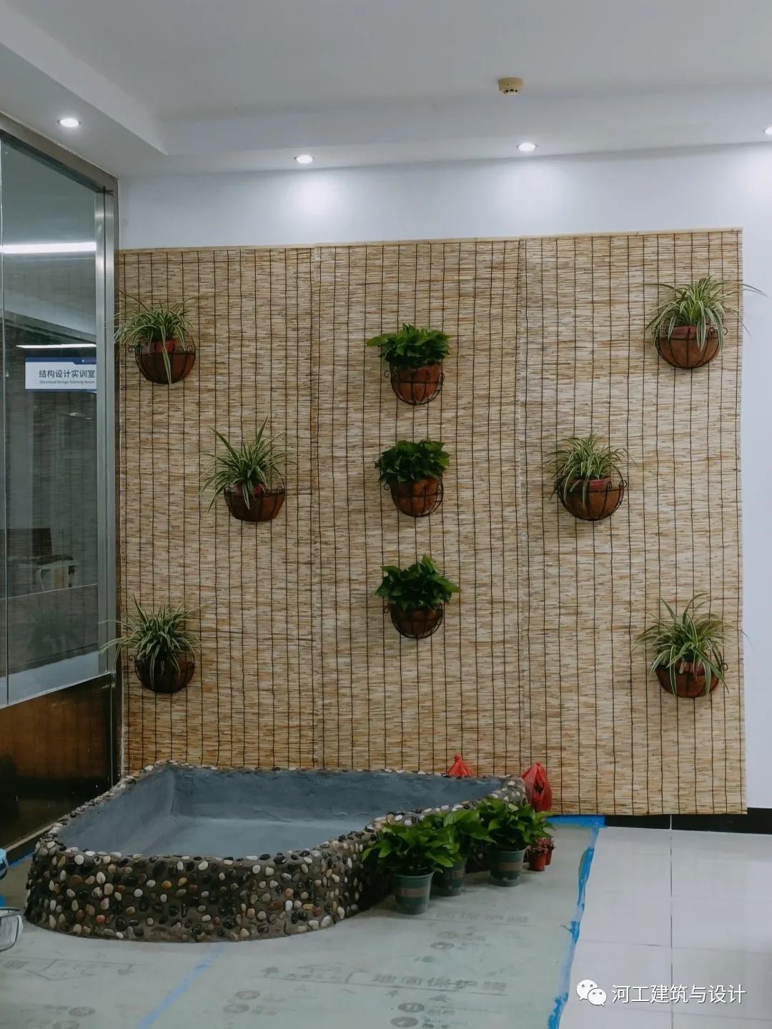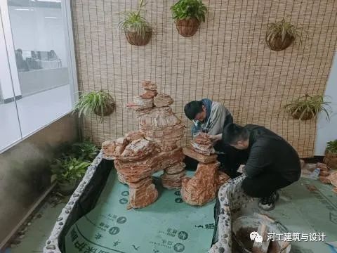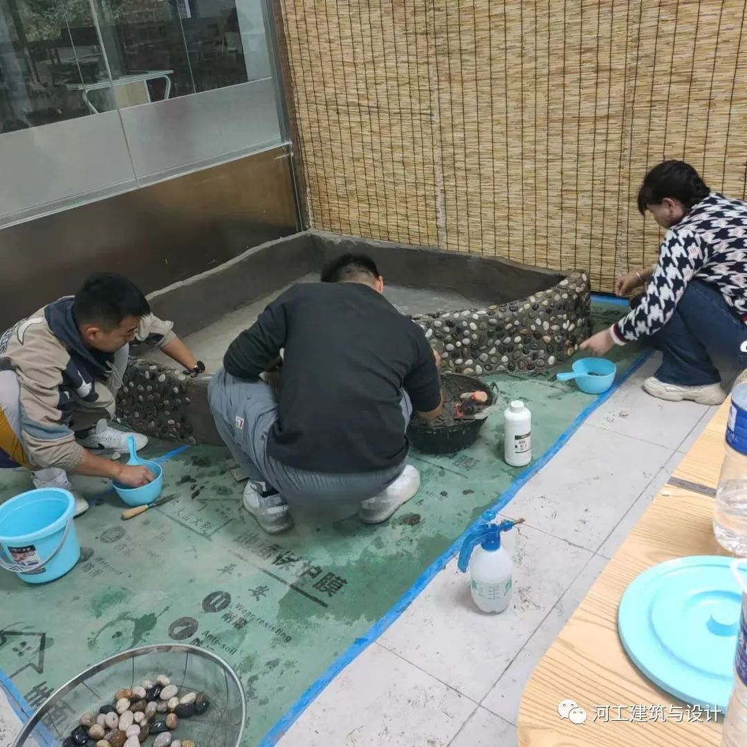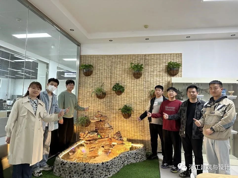2023年3月17日,走进河工实训楼,在风景园林专业实验室内的师生难掩喜悦和激动的心情,以热烈的掌声庆祝建筑与设计学院风景园林专业“室内景观水池施工”开放性实验的圆满完成。