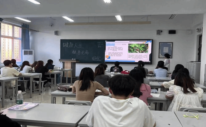 青春的颜色是绚丽多彩的,它在阳光下舞动着我们的美好年华,但是隐藏在暗处的新型毒品伪装成为‘跳跳糖’‘奶茶’‘果冻’等等,试图诱惑青少年进入无尽的黑暗深渊。为了提高在校大学生的拒毒、防毒以及远离诱惑的能力以及响应禁毒纪念日的发展和进行,特此建筑与设计学院反邪教社团于2023年6月13日晚在主教各自习课教室开展“健康人生、绿色无毒”禁毒主题班会活动。