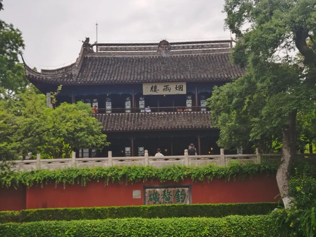 继续向前便是烟雨楼,烟雨楼之美,历来吟咏不绝,100年前中国共产党诞生的大事件更是令其名声大噪。登楼远眺,整个南湖尽收眼底,看到河岸边的红船,仿佛又回到那个风雨如磐的年代,早期共产党员不畏艰难、不惧危险,毅然将一大会议转移至红船之上,烟雨楼也因此见证了中共诞生这一“开天辟地”的大事件。南湖红船点燃的星星之火,形成了中国革命的燎原之势,使四海翻腾,五岳震荡,这正如董必武在楼下正厅楹联所书“烟雨楼台,革命萌生,此间曾着星星火,风云世界,逢春蛰起,到处皆闻殷殷雷。”