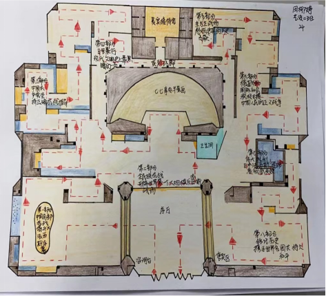 世界各地有艺术类、地方历史类、战争类、个性展览等多种主题类型的博物馆,同学们根据自己兴趣,选择网络调研、文献查阅或结合自己之前走访调研,深入挖掘博物馆的内涵和意义。在实践的过程中,四位老师针对每一个同学出现的问题进行指导,同学们由不知所措到全身心投入到创作的过程。学生们在实践期间,面对博物馆内的陈列展示、空间布局、展馆概况等进行详细分析,撰写的实践报告全部查重率低于30%。同学们运用速彩色马克笔或彩铅等不同的表现形式,描绘出博物馆与展览馆空间布局特点,在老师们的讲解和指导下,创作出许多优秀的作品。