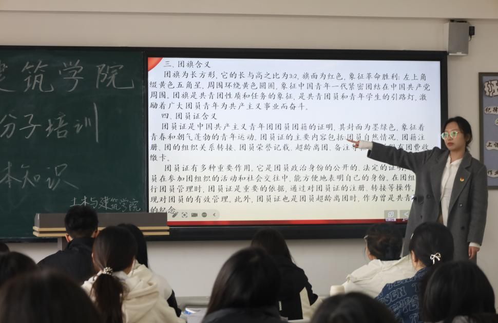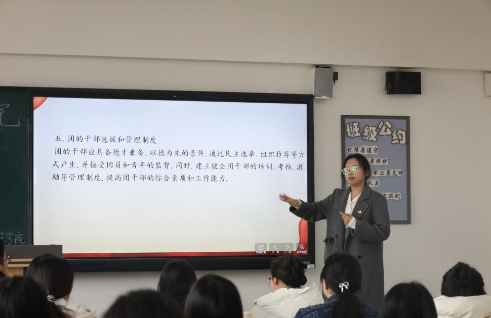 共青团的使命与时代紧密相连。马克思曾言:“一个时代的精神是青年代表的精神,一个时代的性格是青春代表的性格。”主讲人不仅为同学们细致解读了团旗、团徽、团歌的深层含义及规范使用方法,还深入剖析了共青团在新时代的使命担当,指出中国共产主义青年团是在中国共产党领导下的先进青年团体。