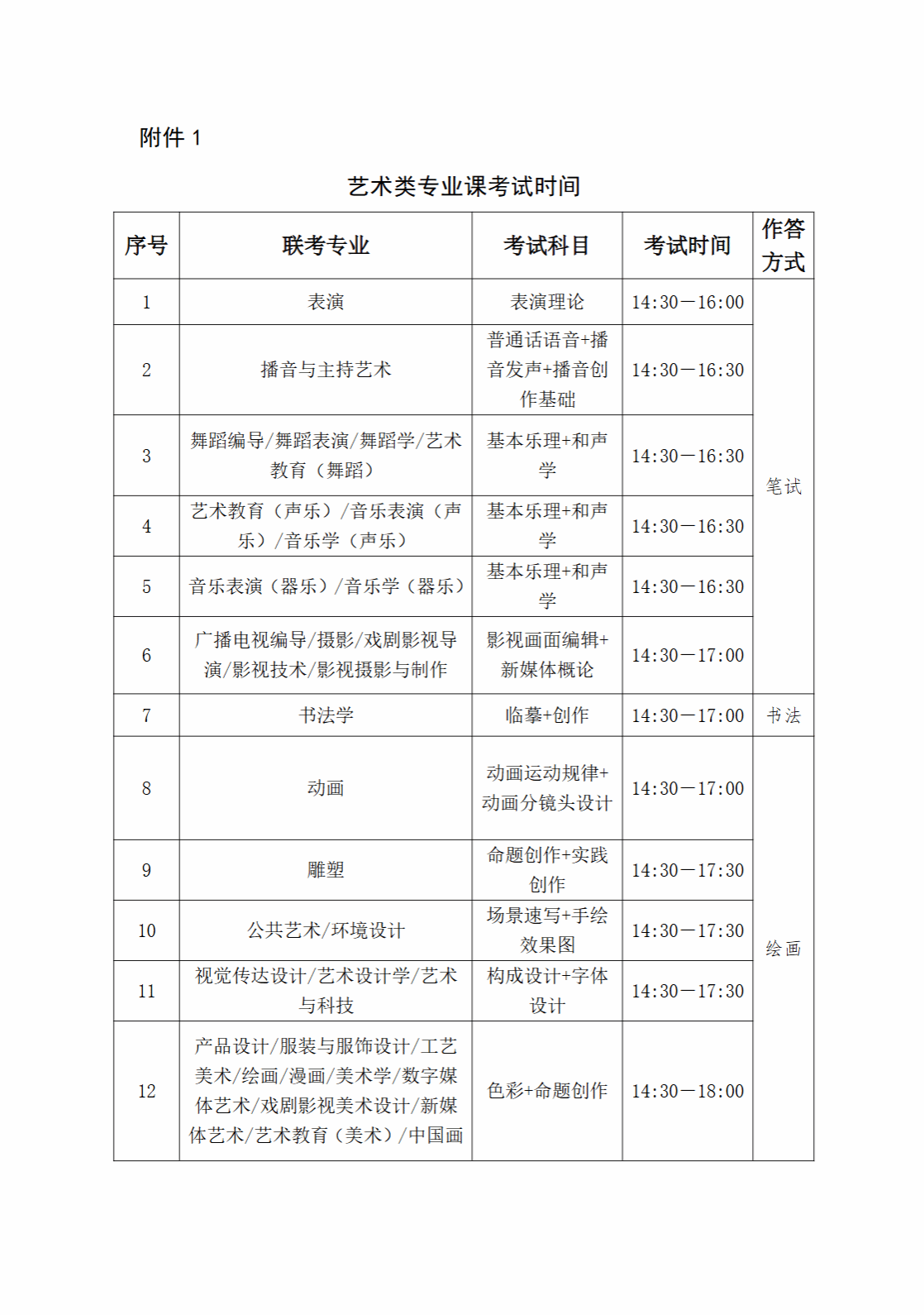 1.艺术类专业课考试时间