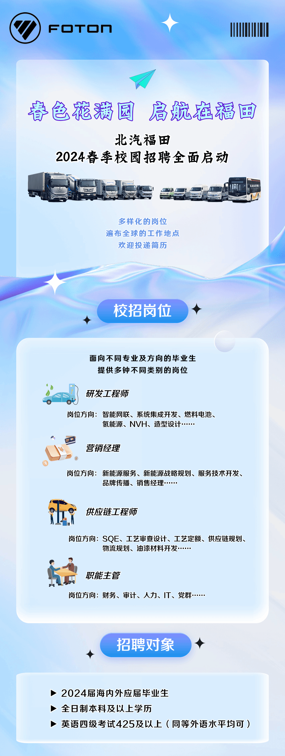 「招聘公告」北汽福田2024春季校园招聘全面启动