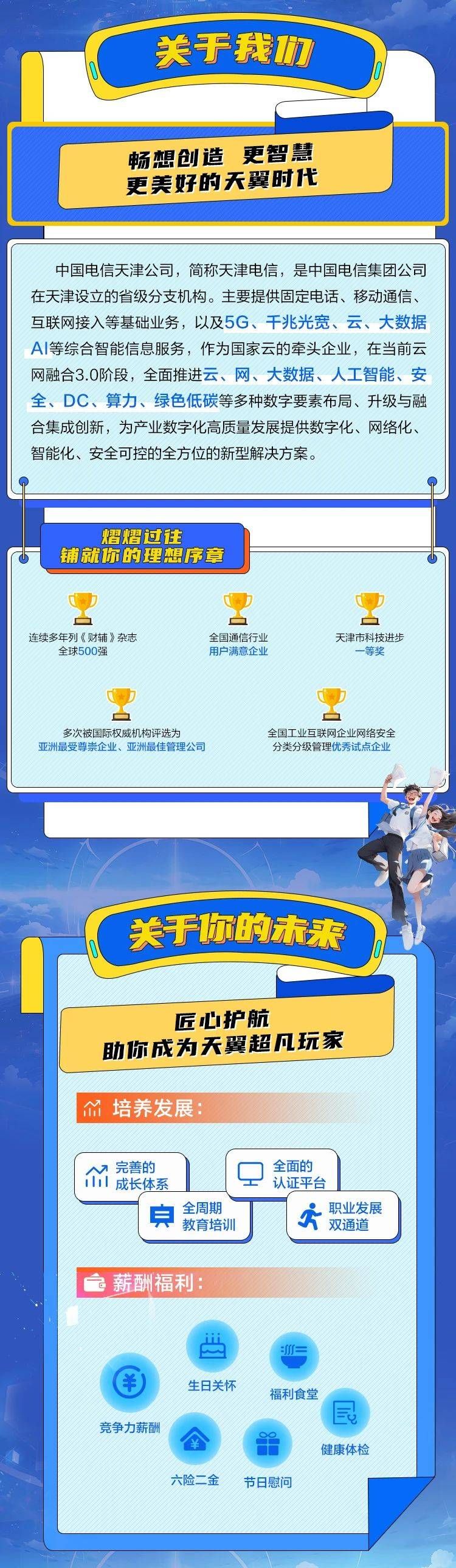 「招聘公告」六险二金!中国电信天津分公司2025招聘公告