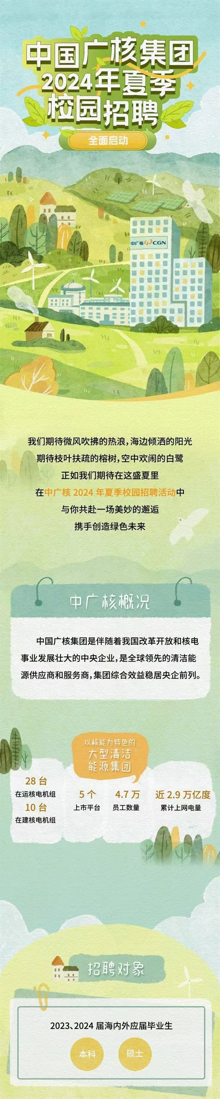 「招聘公告」 中国广核集团2024年夏季校园招聘