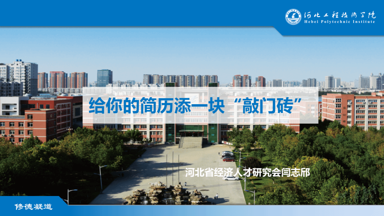 10月25日19时,以《给你的简历添一块“敲门砖”》为主题的讲座在知行楼4-1教室举行。建筑与设计学院邀请高级TTT培训师、营销总裁班特聘讲师闫志邤担任主讲。2024届毕业生参加了本次讲座,向闫志邤老师学习如何制作一份完美的简历。
