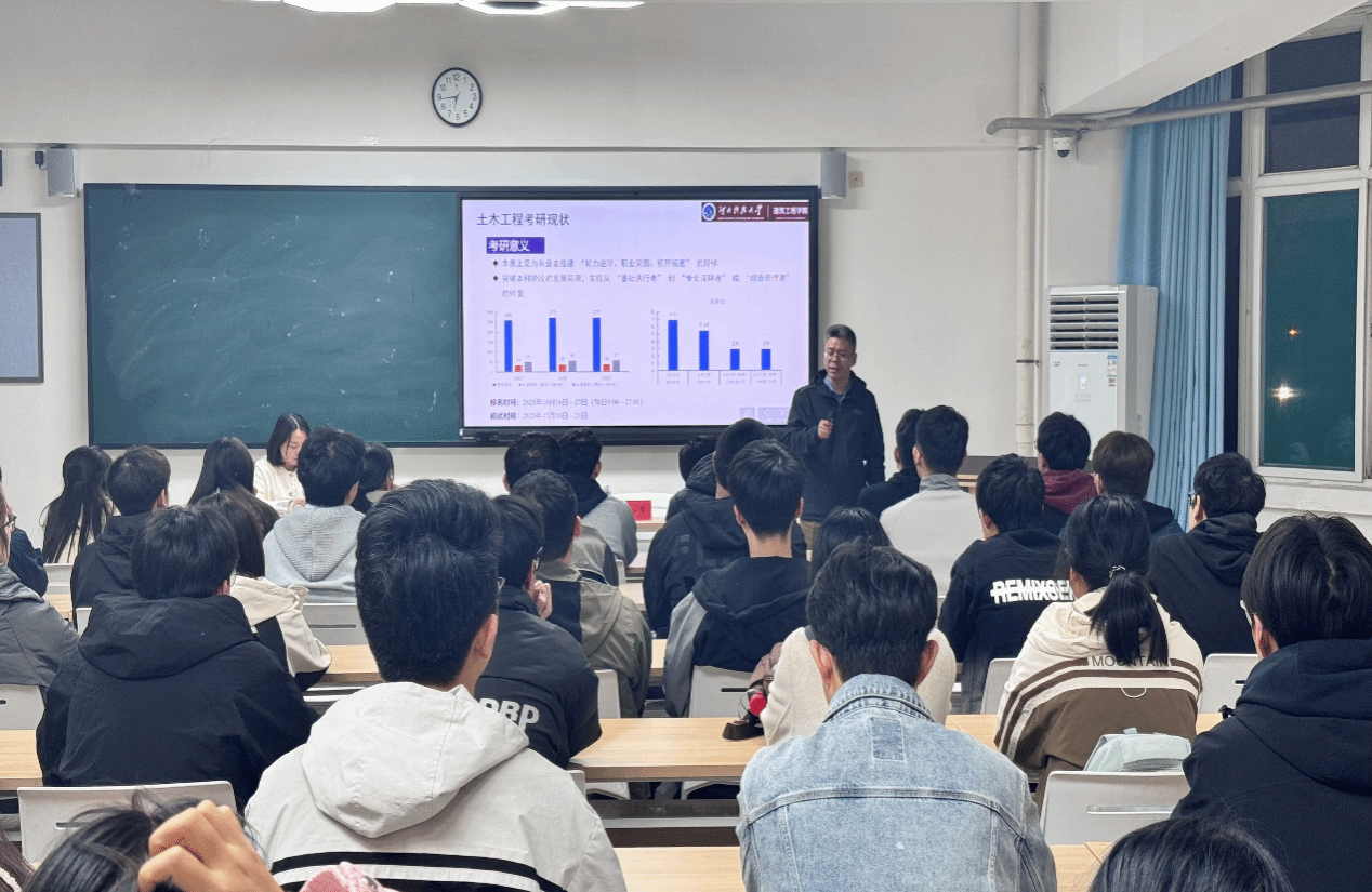 为助力考生精准掌握招生政策,明确备考方向,pp电子游戏平台网站于10月23日举办了2026年硕士研究生宣讲活动。本次活动特别邀请到河北科技大学建筑工程学院副院长梁小勇以及张明哲老师,为学生提供现场指导。